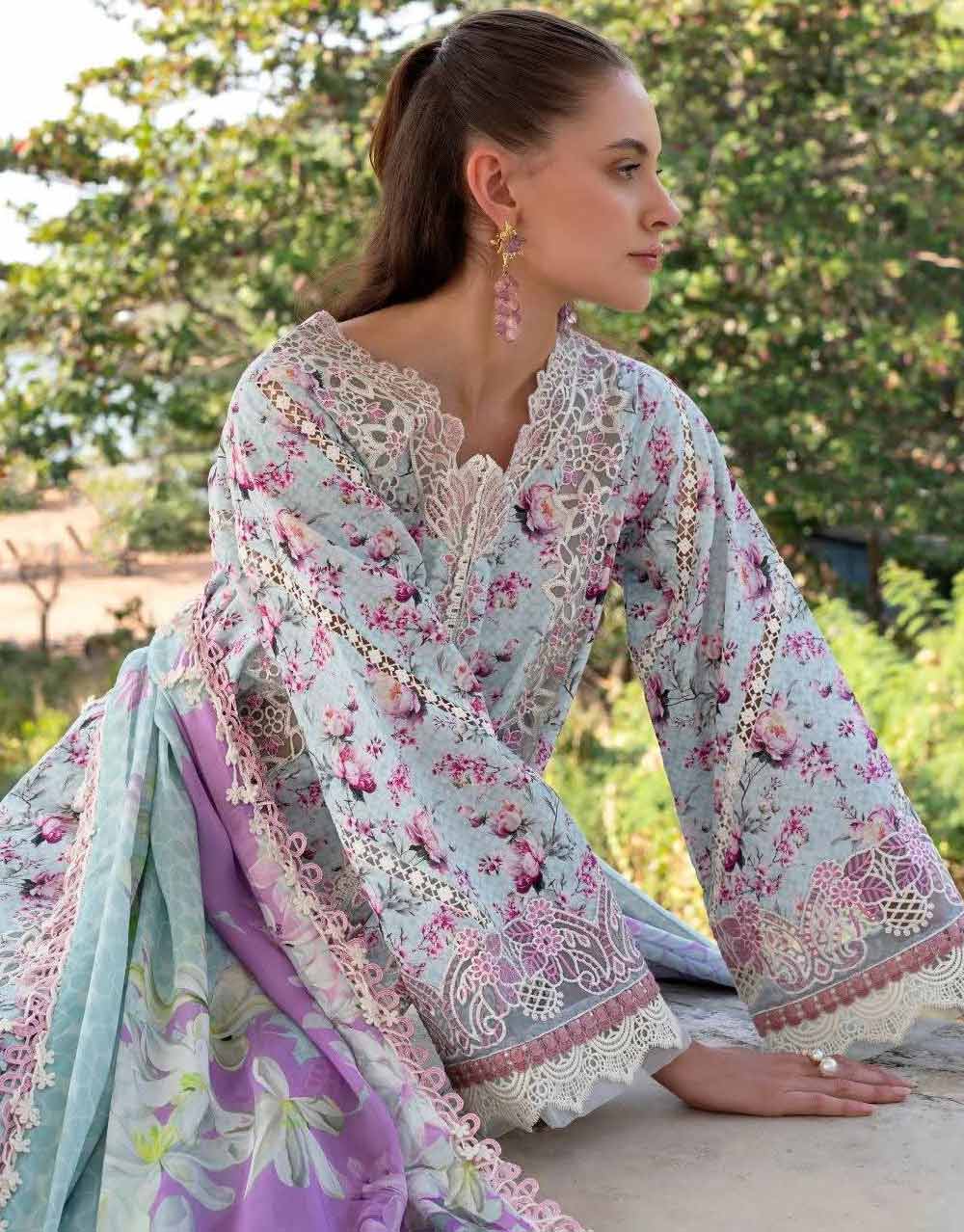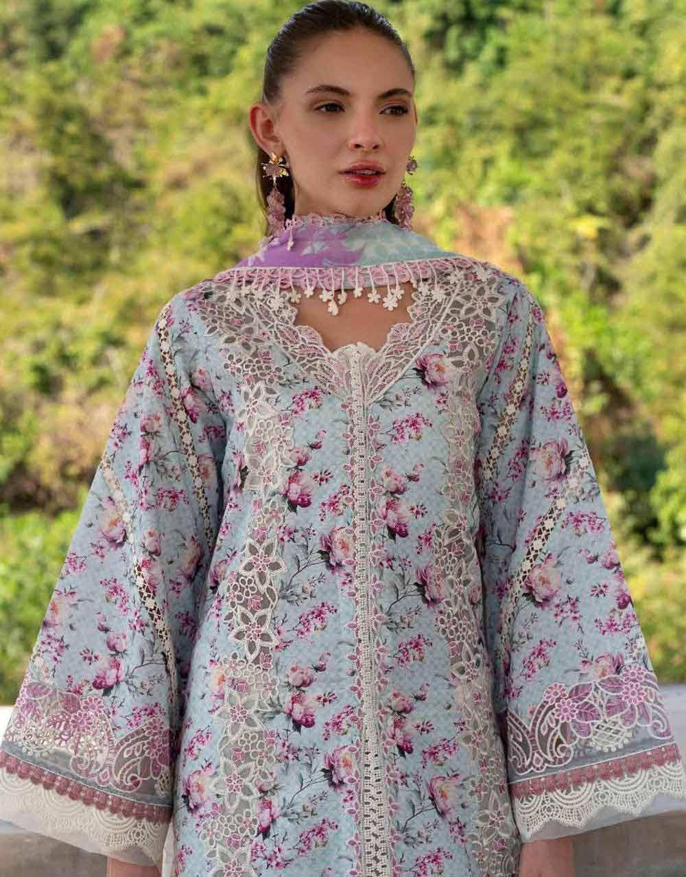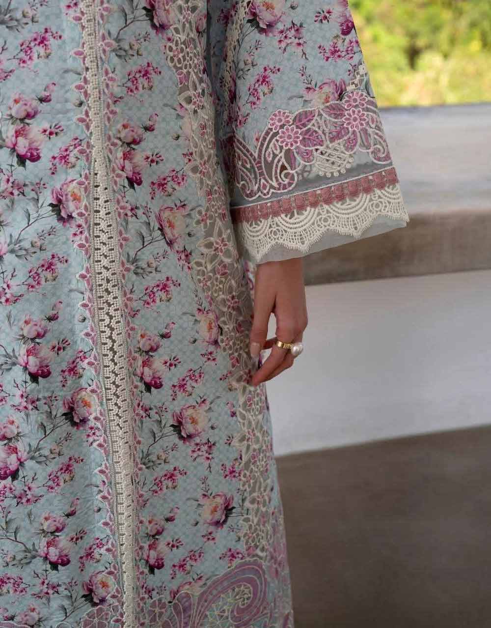 - Color lovers, rejoice – it’s Charlotte! ✨ Prepare to be impressed by the innovative design elements of this gorgeous outfit. The pretty ferozi and purple pink color mix is just the start! The organza embroidered insertions for the panels are designed to give a striking laser cutout feel – a truly modern and sophisticated touch. The neckline and daman border, crafted in two separate parts, are exquisitely detailed and unique. Embroidered sleeve borders add a polished finish. Completed with dyed pants and a beautifully printed silk dupatta, Charlotte is where cutting-edge design meets vibrant color, creating an unforgettable ensemble.