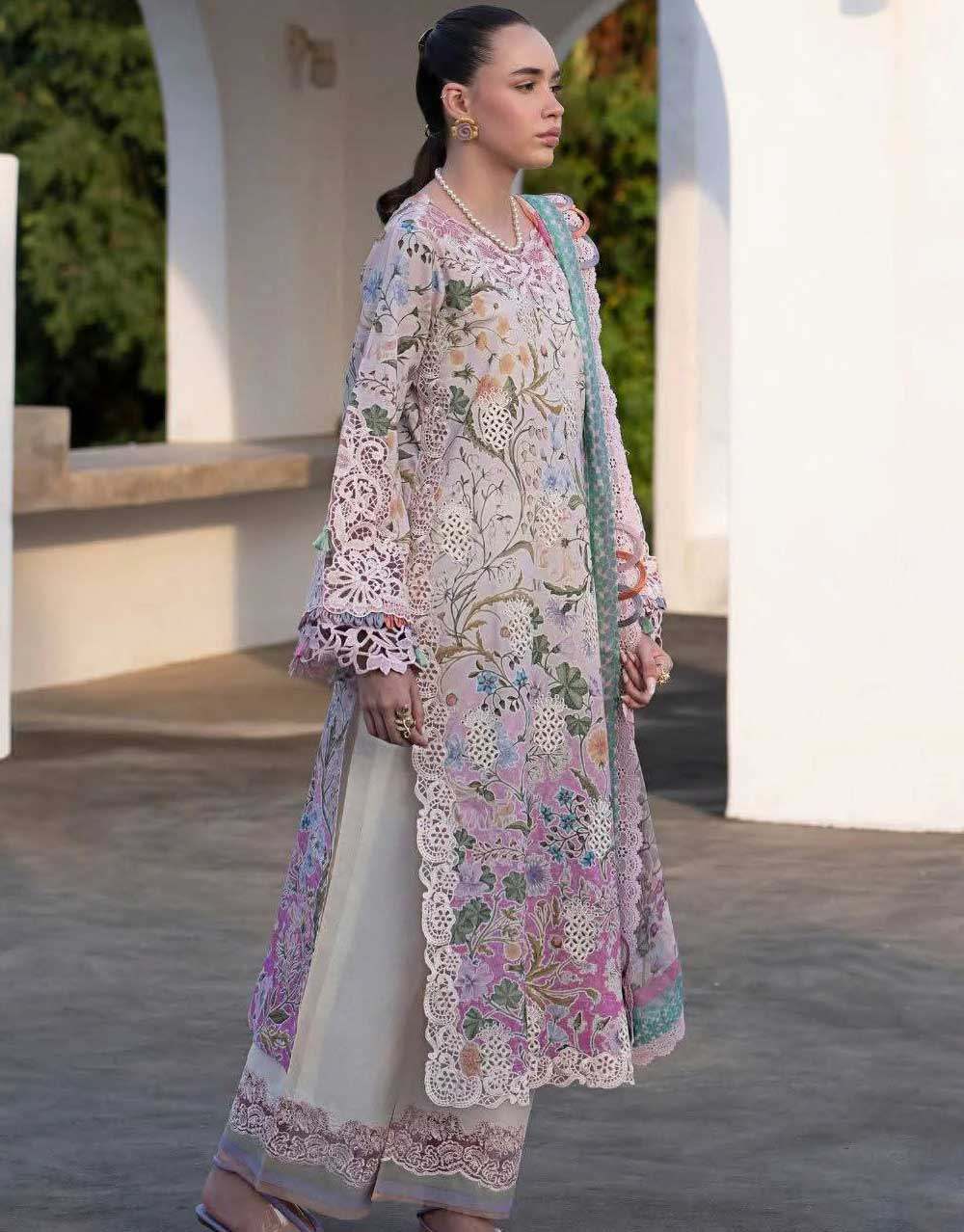 - Behold the beauty of ombre blooms – introducing Rose! 🌹 – a canvas of summer dreams. The shirt is exquisitely embroidered with classic chikankari embroidery, adding timeless grace and texture. Notice the side chalk and daman patti, finished in a delicate cutwork style – a touch of ethereal beauty. The embroidered neckline further enhances the refined appeal. Paired with dyed cambric trousers featuring an embroidered border and a printed chiffon dupatta for a light finish, Rose is where bold floral prints meet soft ombre hues and delicate embroidery, creating an unforgettable summer statement.
