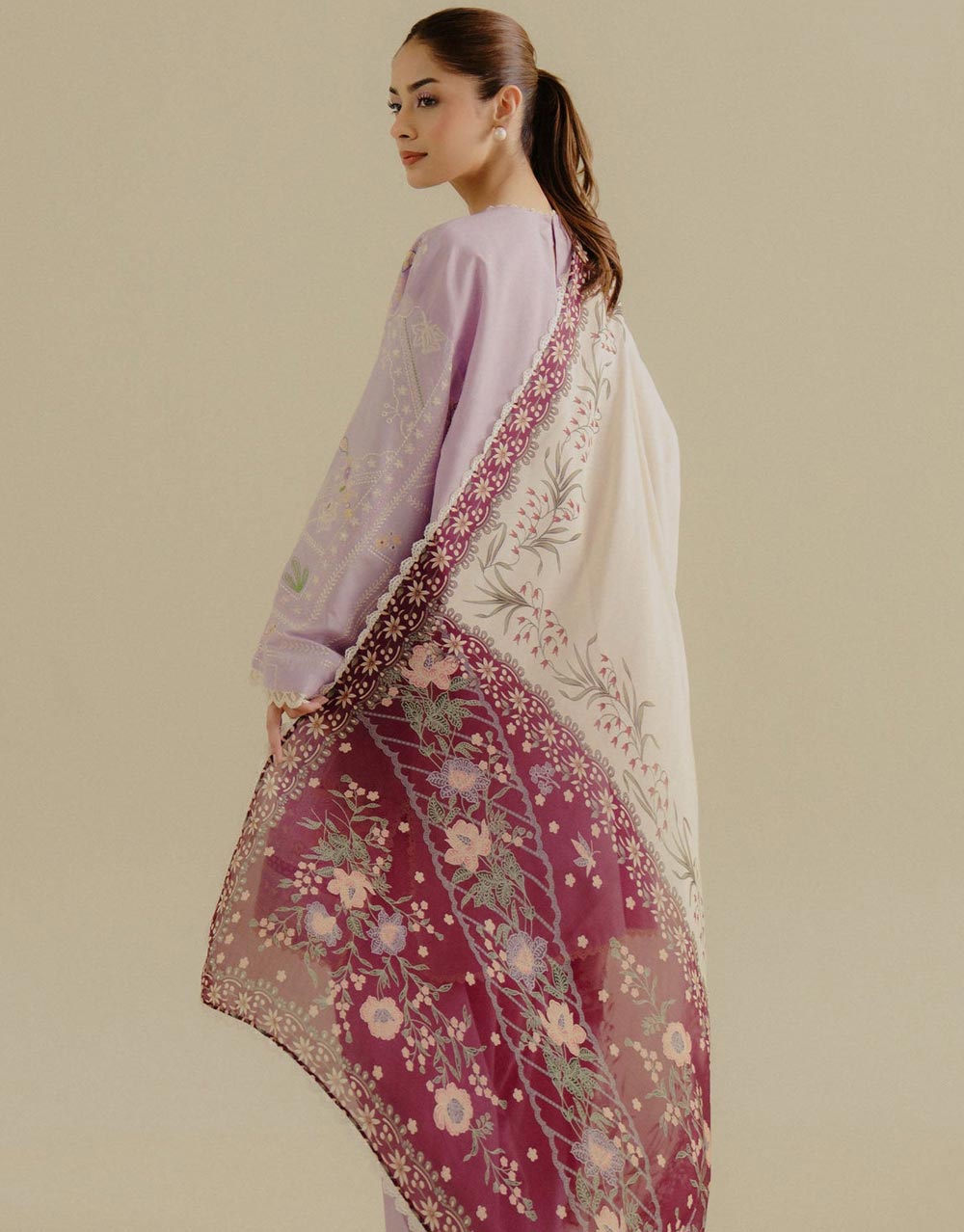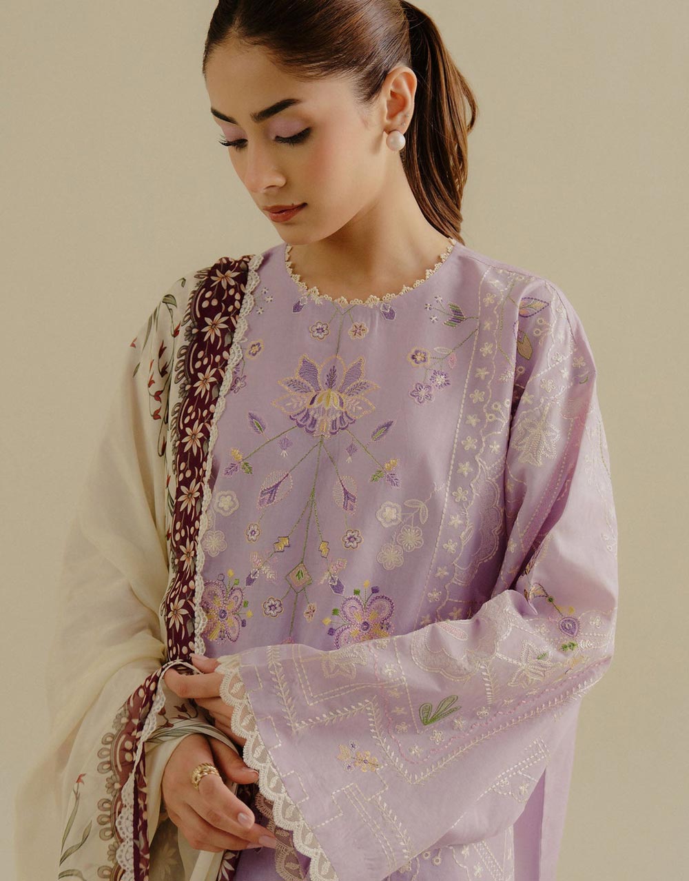 A lilac base with composed embroidery, paired with a matching silk dupatta, offers a delicate blend of refreshing hues and refined elegance.