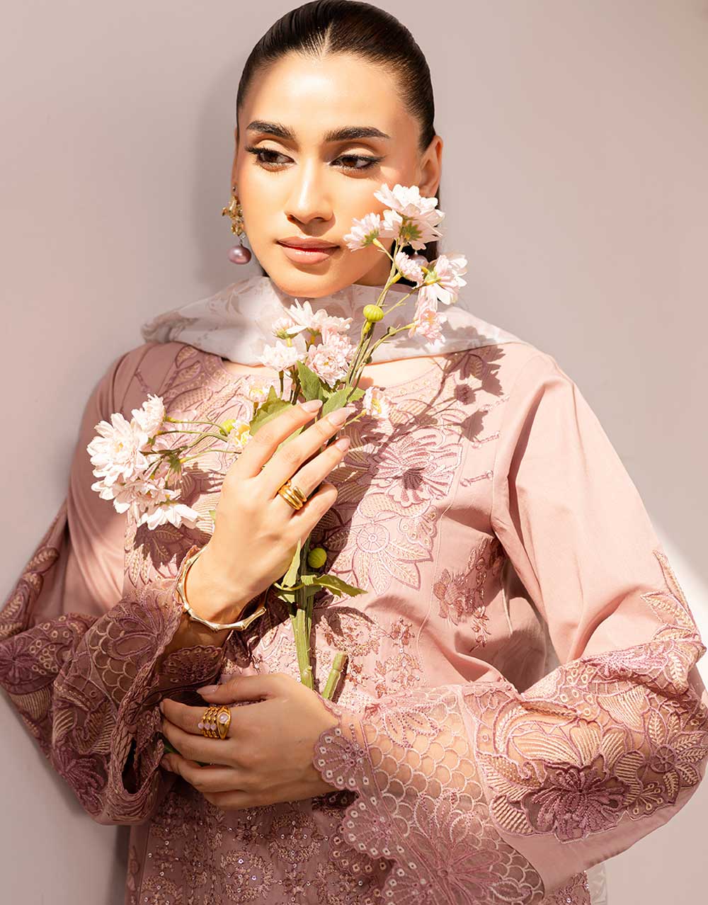 Esra- POWDER PINK Embroidered Lawn 3 PC