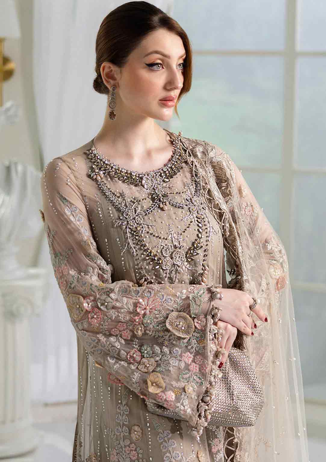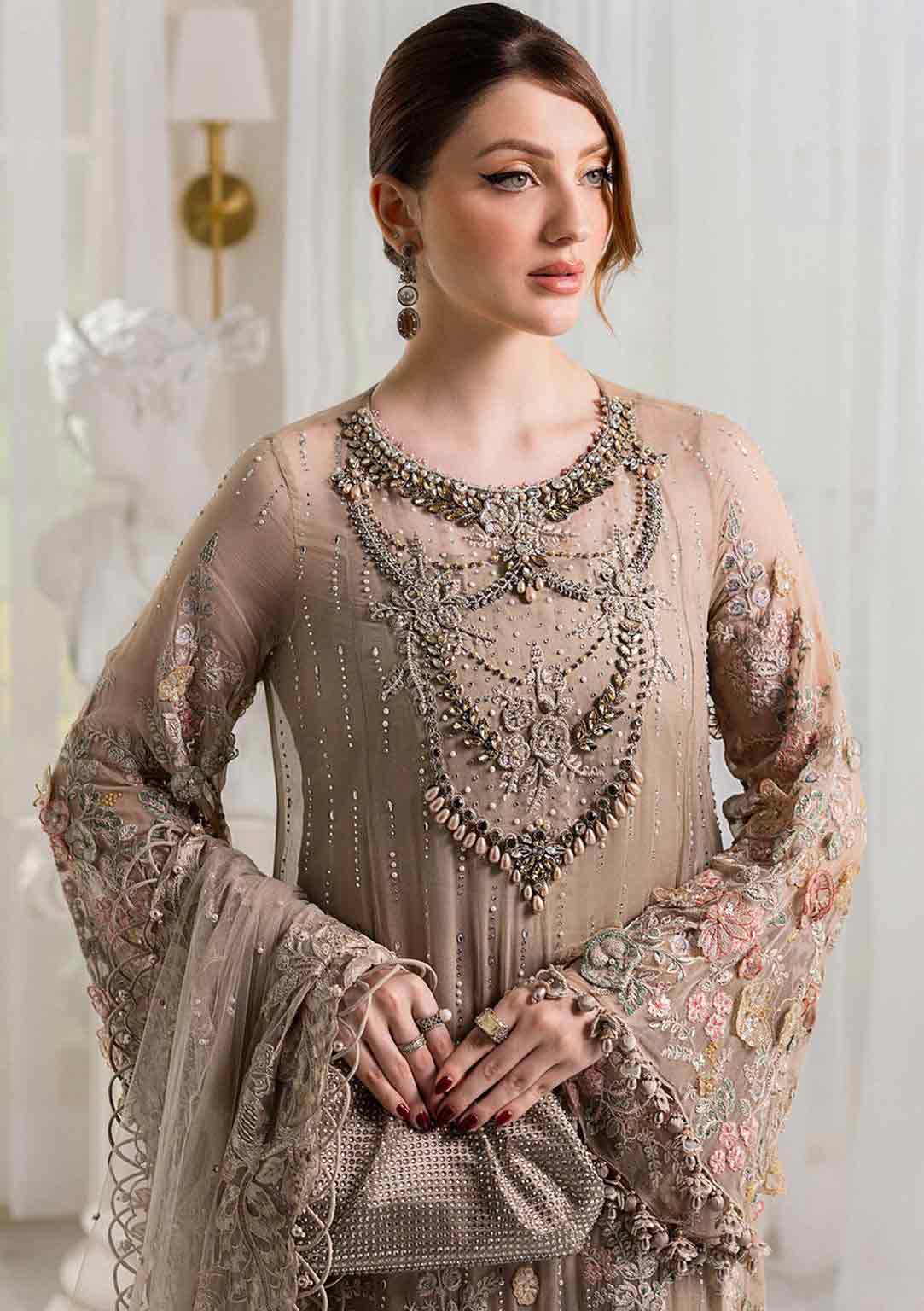 Embroidered Chiffon Front With 3D Flowers & Diamantes