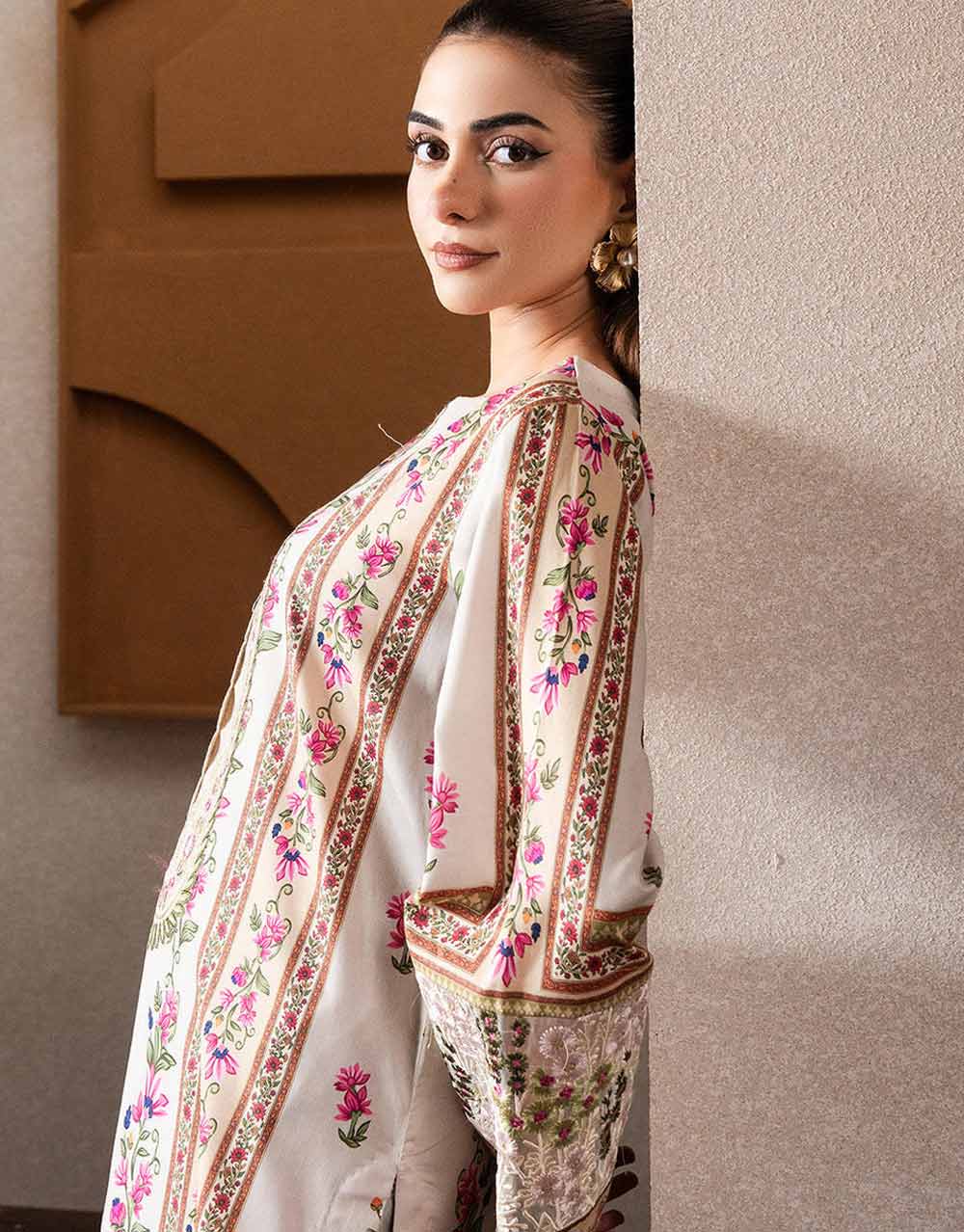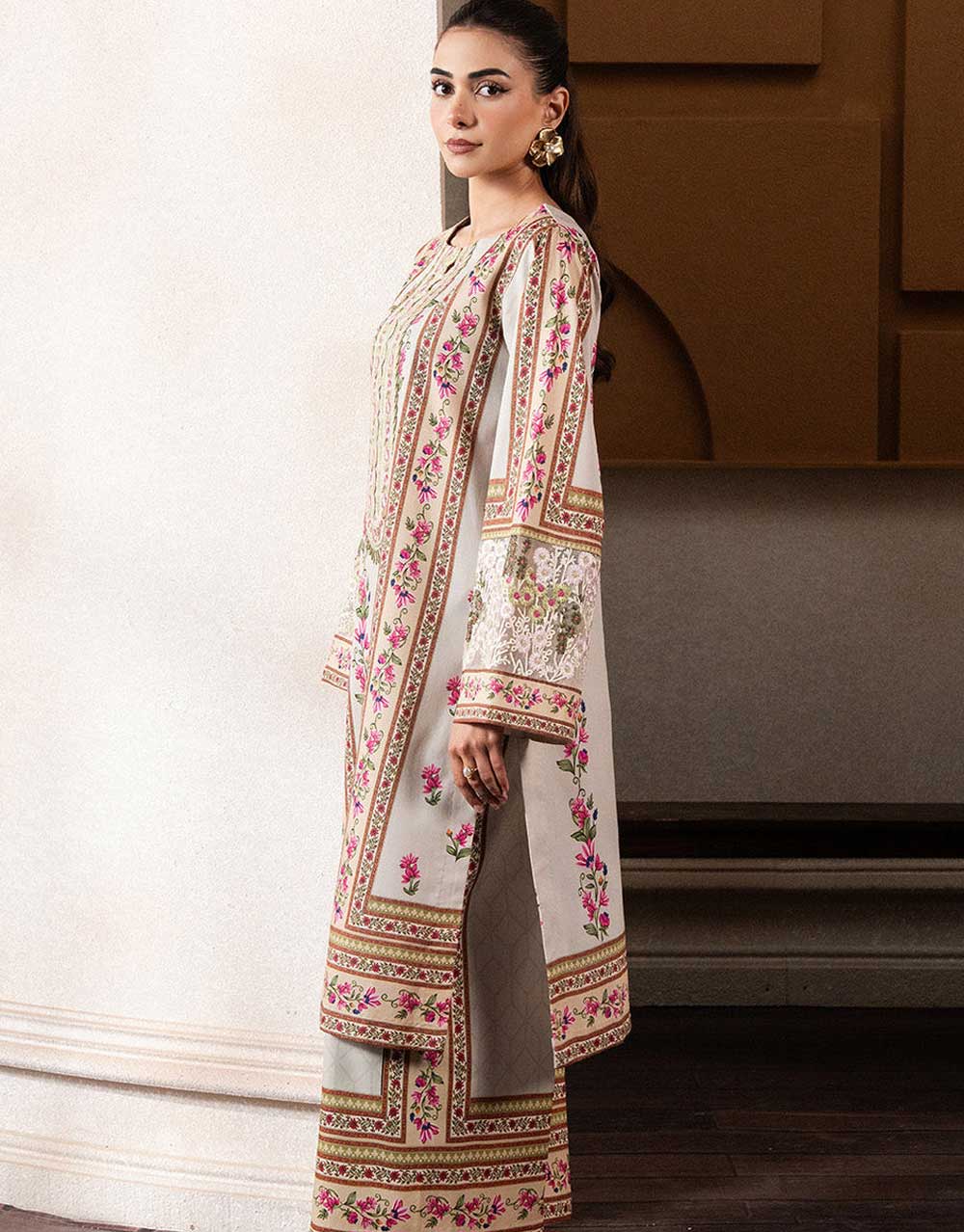 - Discover timeless elegance with this 2-piece Pret set in a classic brown hue. The printed lawn shirt features intricate organza detailing, perfectly complemented by the cambric printed trouser for a sophisticated and graceful look.