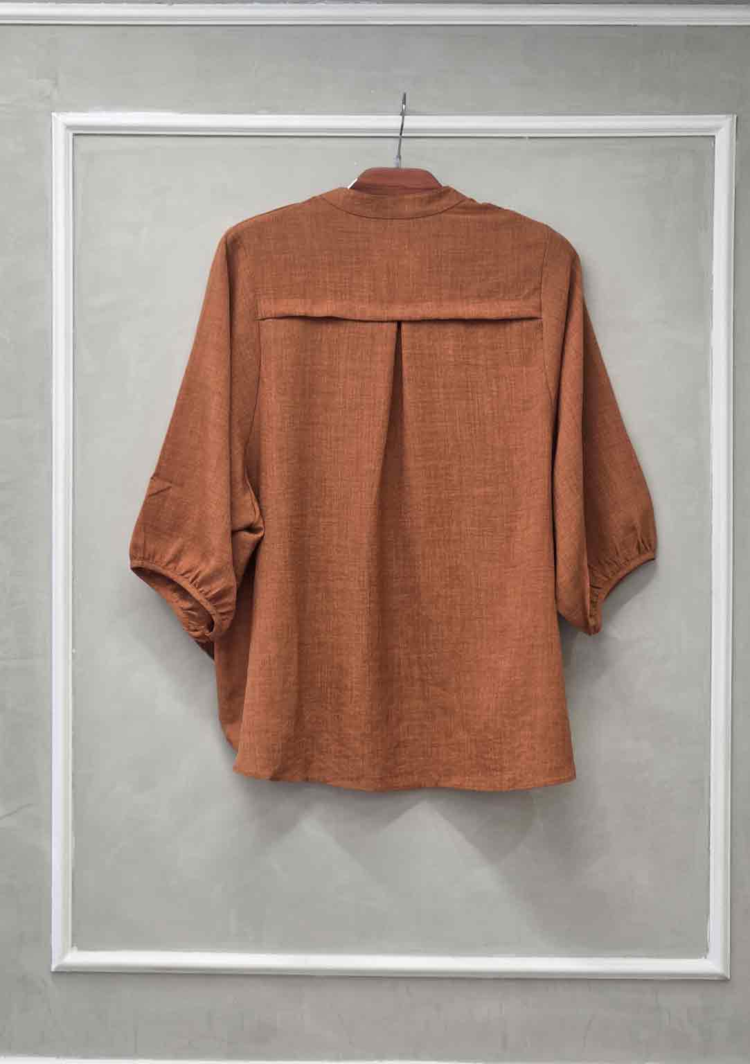 Linen and cotton mix. Straight Design. Shirt Collar.
