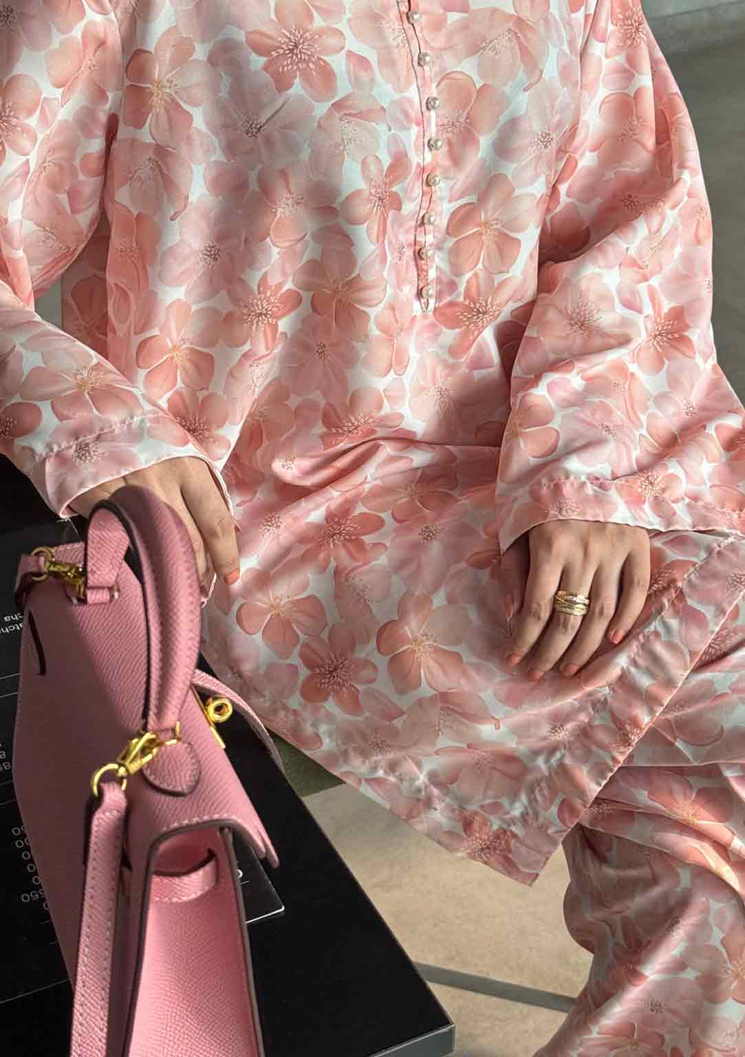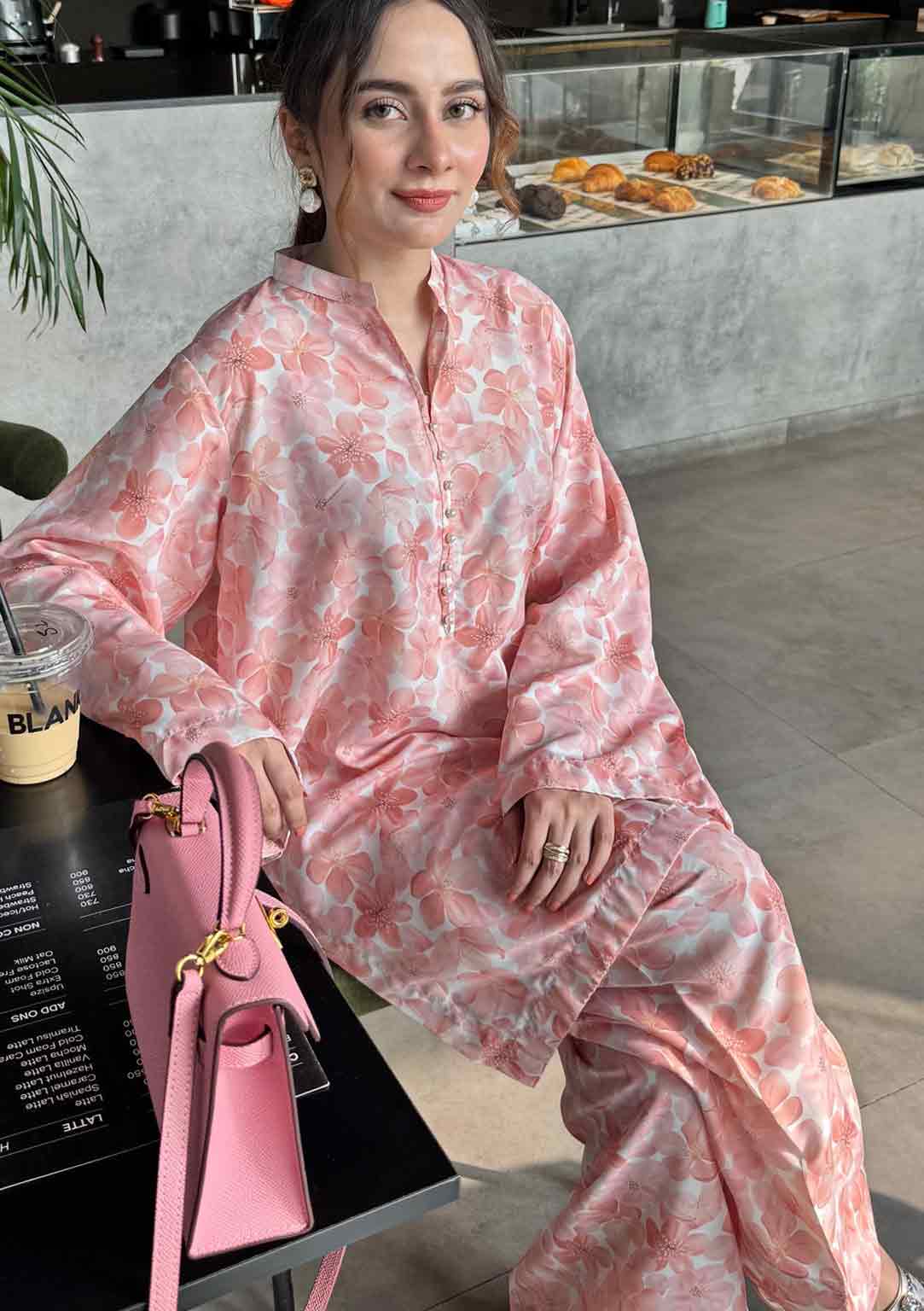 - A cutesy floral printed set paired with farshi shalwar with some pearls detailing on the neckline.Fabirc: Poly lawn