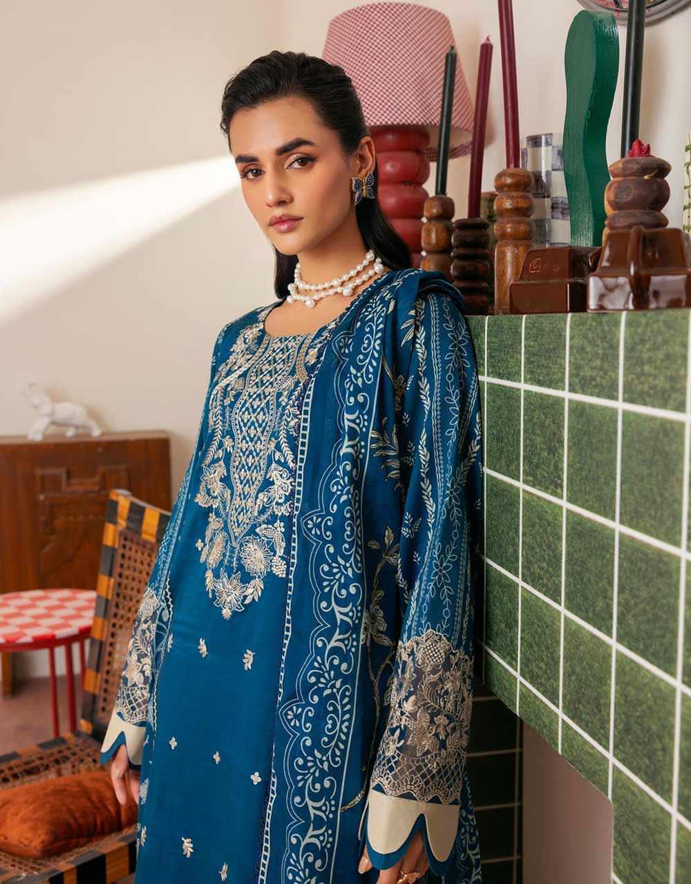 - Embellishment items in stitched outfits are subject to market availability